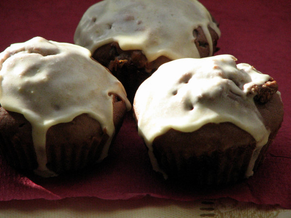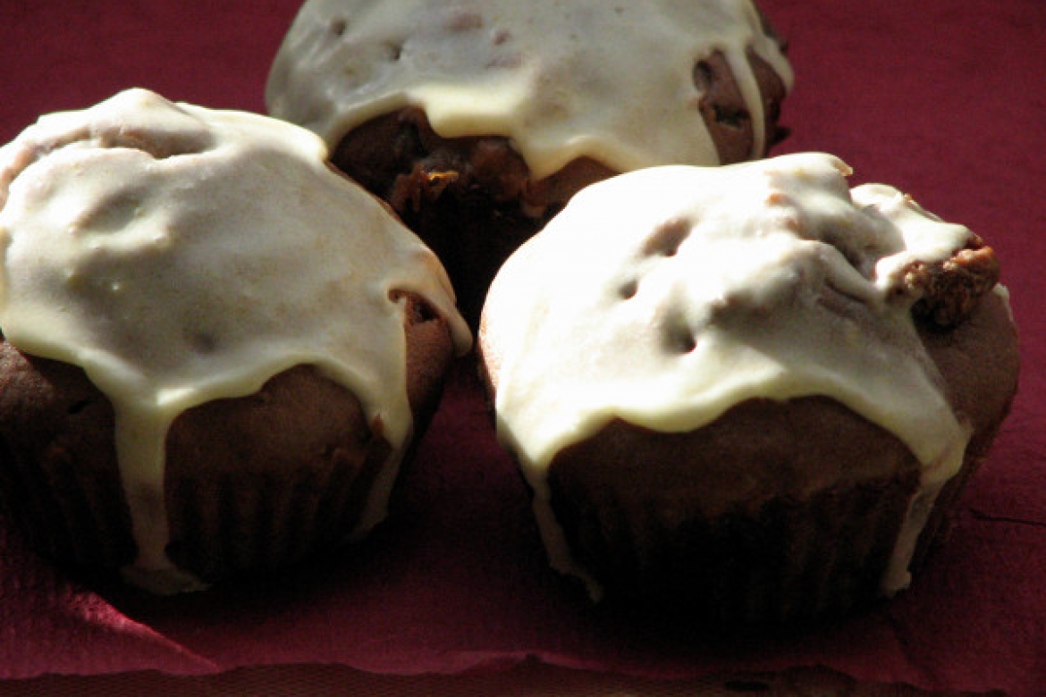 Składniki należy połączyć do uzyskania gęstej konsystencji. Lukier rozprowadzamy tylko na ciepłe muffinki.
