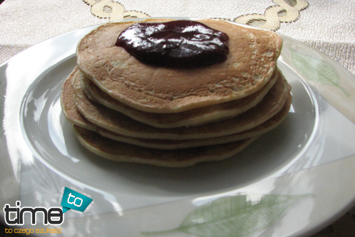Po zmiksowaniu wszystkich składników na gładką masę, placki należy smażyć na rozgrzanej patelni, na średnim ogniu, z dwóch stron. Mimo słodkich placków samych w sobie, można je przyozdobić syropem klonowym, dżemem, bądź czekoladą. Smacznego!