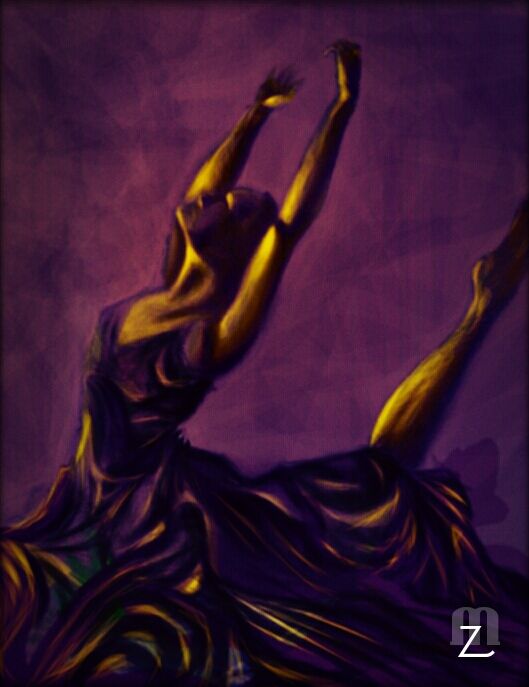 Obraz według mojego skromnego zdania jest właśnie takim symbolicznym połączeniem trzech aspektów: kobiecego piękna, tajemniczości, ulotności, ale i niewyobrażalnej zmysłowości, jak również pewnej siły, chęci życia; z drugiej strony pojawia się szlachetność barwy, jej władza, siła, emanacja tym co wzniosłe i bliskie ideałom; jest też taniec, ruch, próba przekazania uczuć, emocji, myśli, odszukania swojej własnej wolności, poddania się pasji, wszystko to łączy się w tym obrazie… Warto wgłębić się w obraz, spróbować go odczytać w swój własny, indywidualny sposób, wbrew pozorom widać na nim więcej, niż się wydaje.