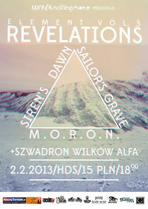 To już piąta edycja imprezy z cyklu „Element” organizowana przez core & nothing more. Tym razem pod nazwą "Revelations" zagrają zespoły, które zostały uznane według c&nm za objawienie jeśli chodzi o polską scenę muzyczną.