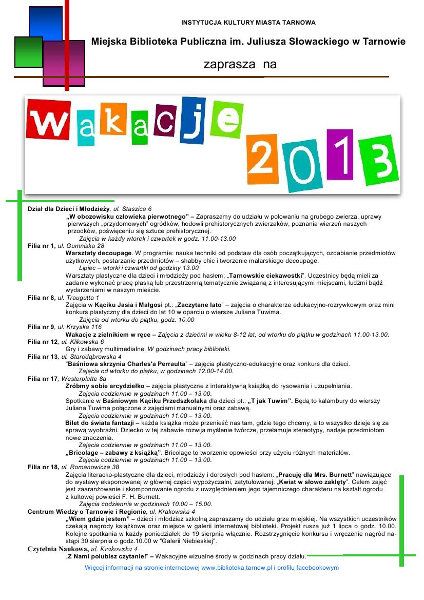 Wszelkie dodatkowe informacje znajdą Państwo na stronie www.biblioteka.tarnow.pl oraz profilu facebookowym MBP.
