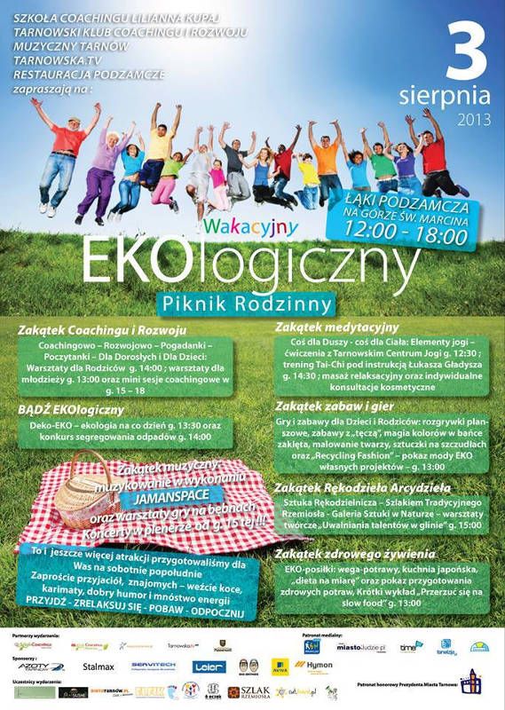 W pierwszą sobotę sierpnia o godz 12:00 zapraszamy na "Łąki Podzamcza" przy Restauracji Podzamcze na EKOlogiczny Piknik Rodzinny organizowany przez Klub Coachingu i Rozwoju w Tarnowie. Głównym przesłaniem Pikniku jest idea "Eko-życia", która dotyczy m.in. zdrowego stylu życia, dobrych relacji pełnych miłości w Rodzinie i naszym otoczeniu oraz dbaniu o środowisko naturalne.