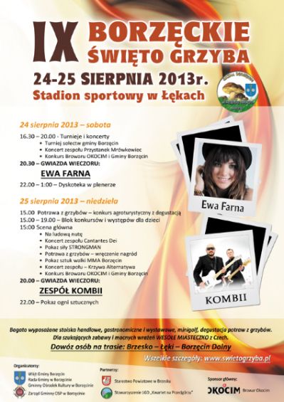 Już po raz 9 w Borzęcinie nie zabraknie wielkich gwiazd polskiej sceny muzycznej. Na święcie nie zabraknie również licznych konkursów, atrakcji oraz pysznych potraw, wśród których królować będą oczywiście grzyby.