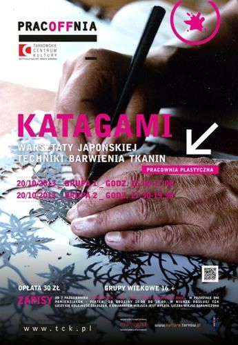 Katagami pochodzi od słów; kata - wzór, gami – papier. To szablon wykonany z papieru służący do nanoszenia wzorów na tkaninę. Artyści trudniący się wycinaniem motywów dekoracyjnych latami muszą doskonalić swe umiejętności. Podczas warsztatów będzie można się zmierzyć z misternym wycinaniem wzorów lub skorzystać z wcześniej przygotowanych.
