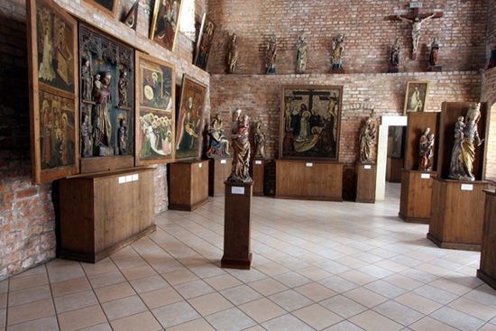 Najważniejszy dział zbiorów stanowią zabytki sztuki cechowej - gotyckiej rzeźby i malarstwa z terenu Małopolski, reprezentujące tzw. szkołę krakowsko-sądecką. Są to zabytki bardzo ważne dla poznania poziomu i dziejów polskiej kultury średniowiecznej.