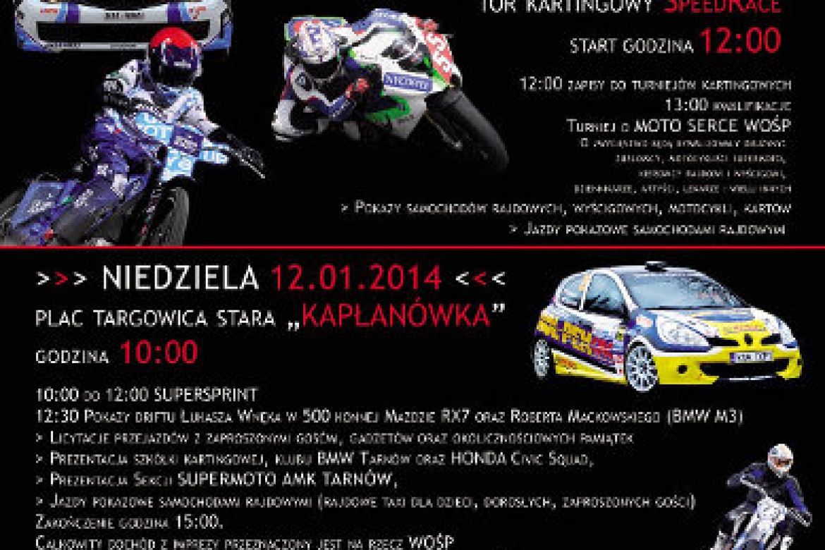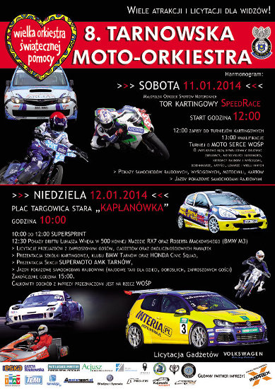 W niedzielę 12.01.2014r. zapraszamy od godz. 10:00 na Plac "Targowica" (stara "Kapłanówka") - Tarnów, Al. M.B. Fatimskiej, gdzie odbędzie się SuperSprint oraz pokazy przedstawicieli różnych dziedzin motorsportu.