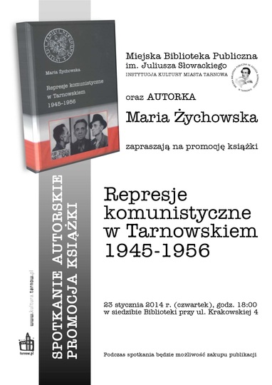 Spotkanie z Marią Żychowską połączone z promocją jej najnowszej książki „Represje komunistyczne w Tarnowskiem 1945-1956” odbędzie się 23 stycznia o godz. 18.00 w siedzibie biblioteki przy ul. Krakowskiej 4.